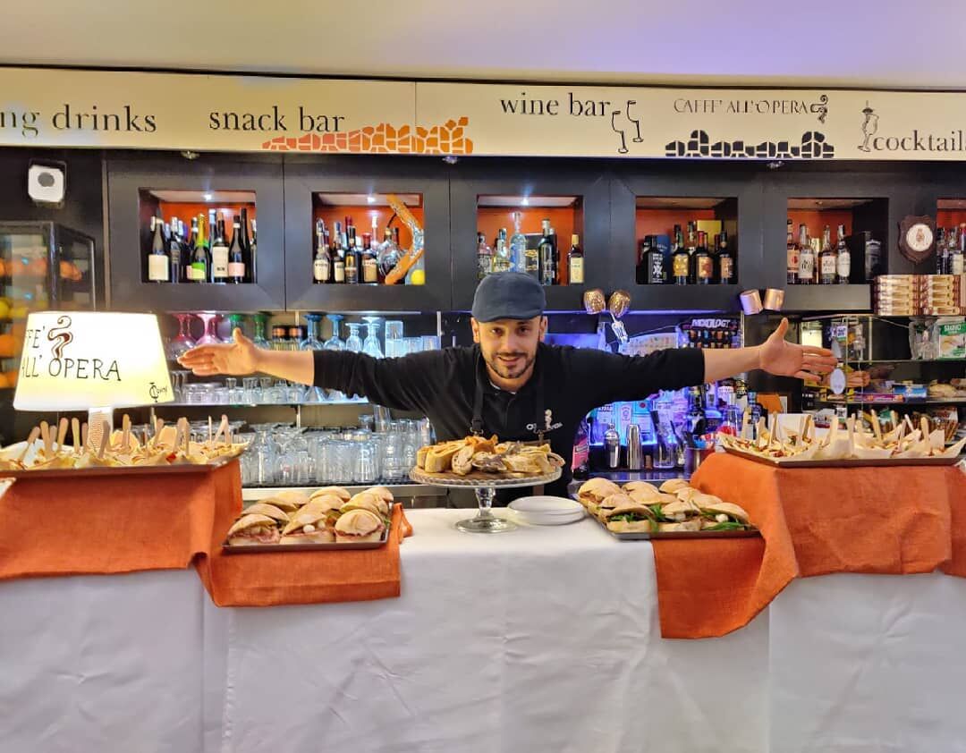 Da Caffè all' Opera trovate un team giovane e dinamico pronto ad accogliervi. Aperto dalla colazione al pranzo, all’ora dell’aperitivo o per finire la giornata con una cena in buona compagnia. Ampia selezione dal food al Beverage, per vivere momenti di gusto e convivialità.